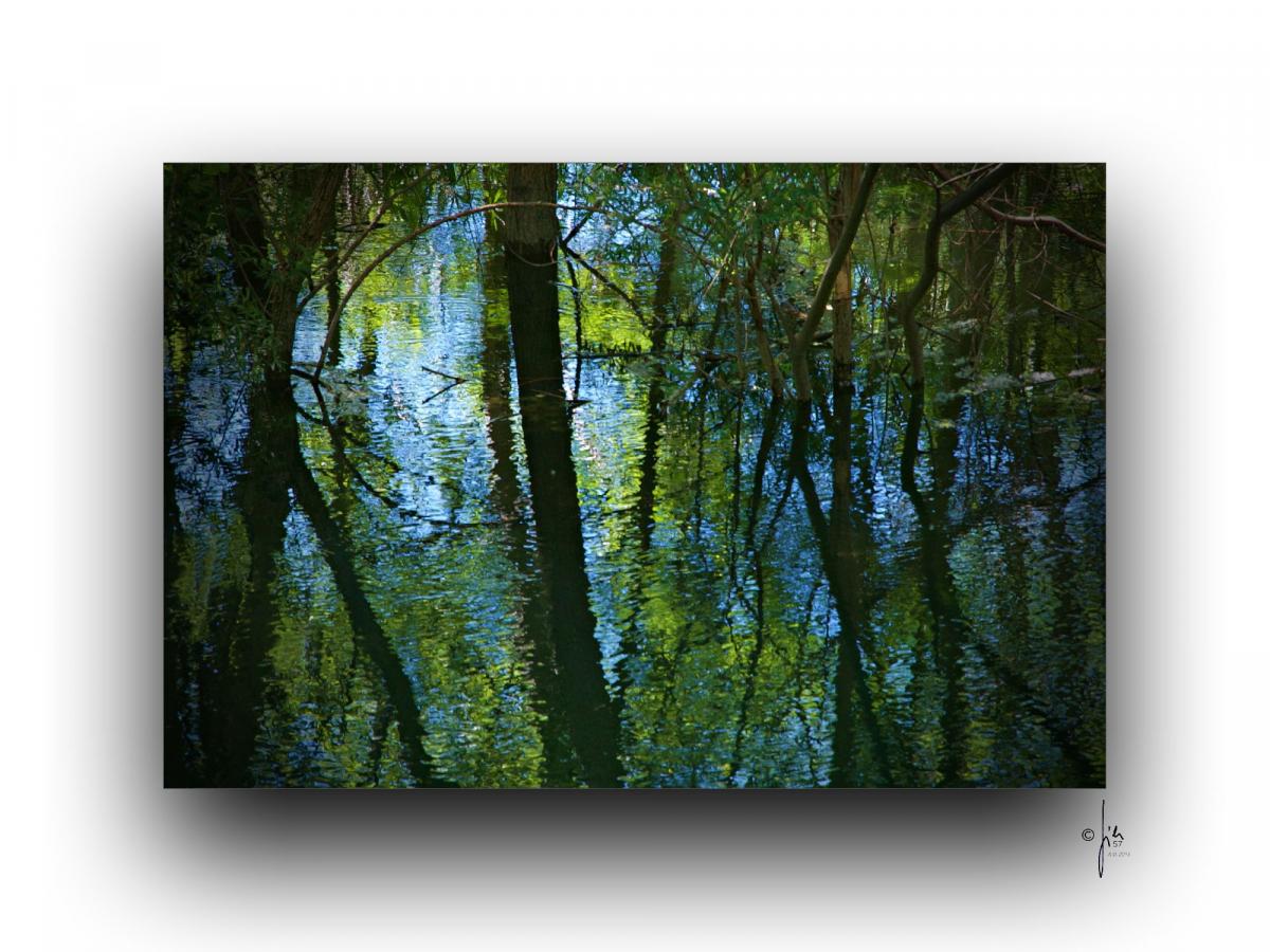 Sullo specchio azzurro del fiume, gli alberi si ergono come guardiani dell’incanto. I loro rami si protendono verso il cielo e con grazia, si riflettono nella quiete delle acque. Un’immagine doppia, una sinfonia di verde che con il riflesso liquido, genera un dipinto naturale dove il cielo si fonde con la terra