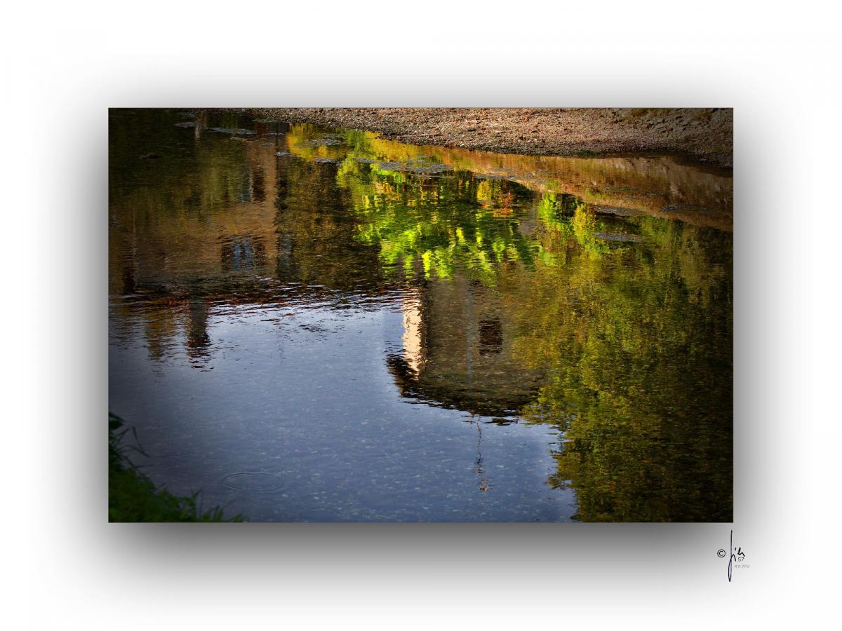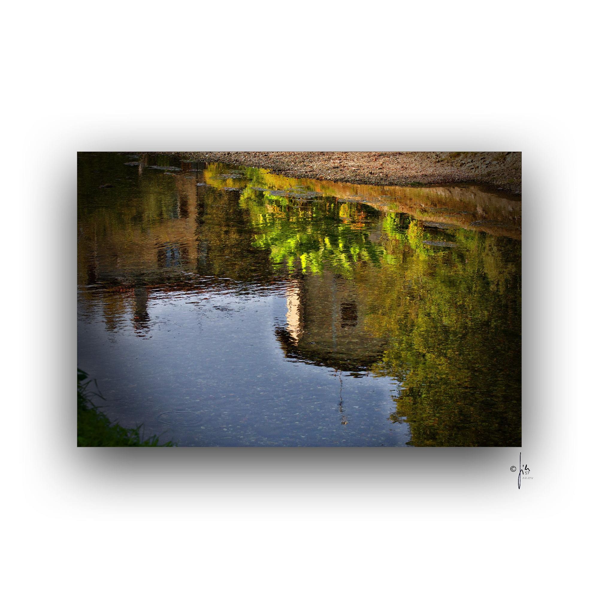 Nelle placide acque del canale si specchia l’anima di una dimora antica, avvolta da alberi che il tempo ha dipinto nei toni dell’autunno imminente. Ogni foglia, ogni arbusto, ogni pietra sembra custodire un segreto, un riflesso perfetto di una storia che scorre lenta.