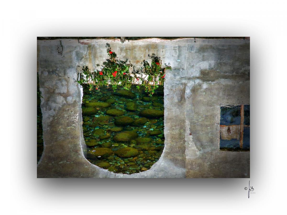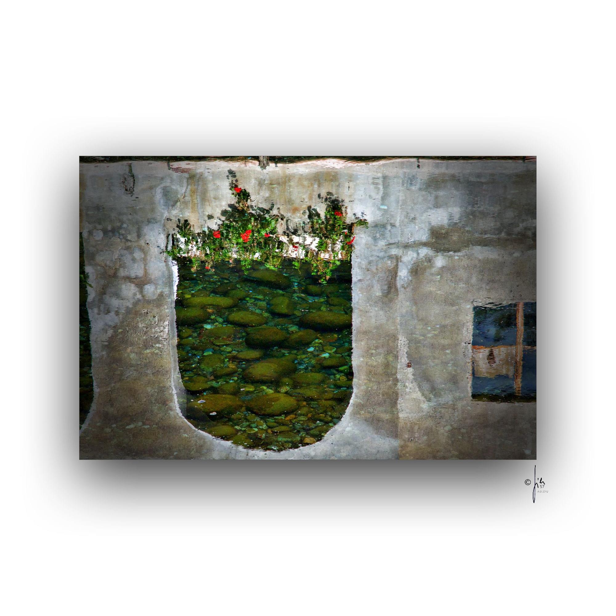 Attraverso l’acqua calma del Naviglio Grande, si svela un riflesso che sembra provenire da un altro mondo. Una porta e una finestra affiorano nella loro semplicità, mentre dei fiori rossi catturano lo sguardo, accendendo di vita l’immagine. È come se quel riflesso fosse una finestra su un sogno, dove ogni dettaglio invita a perdersi nella sua magia