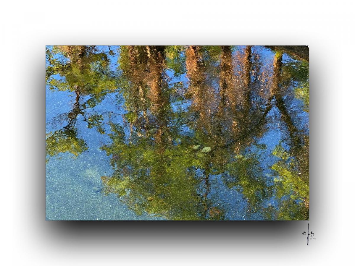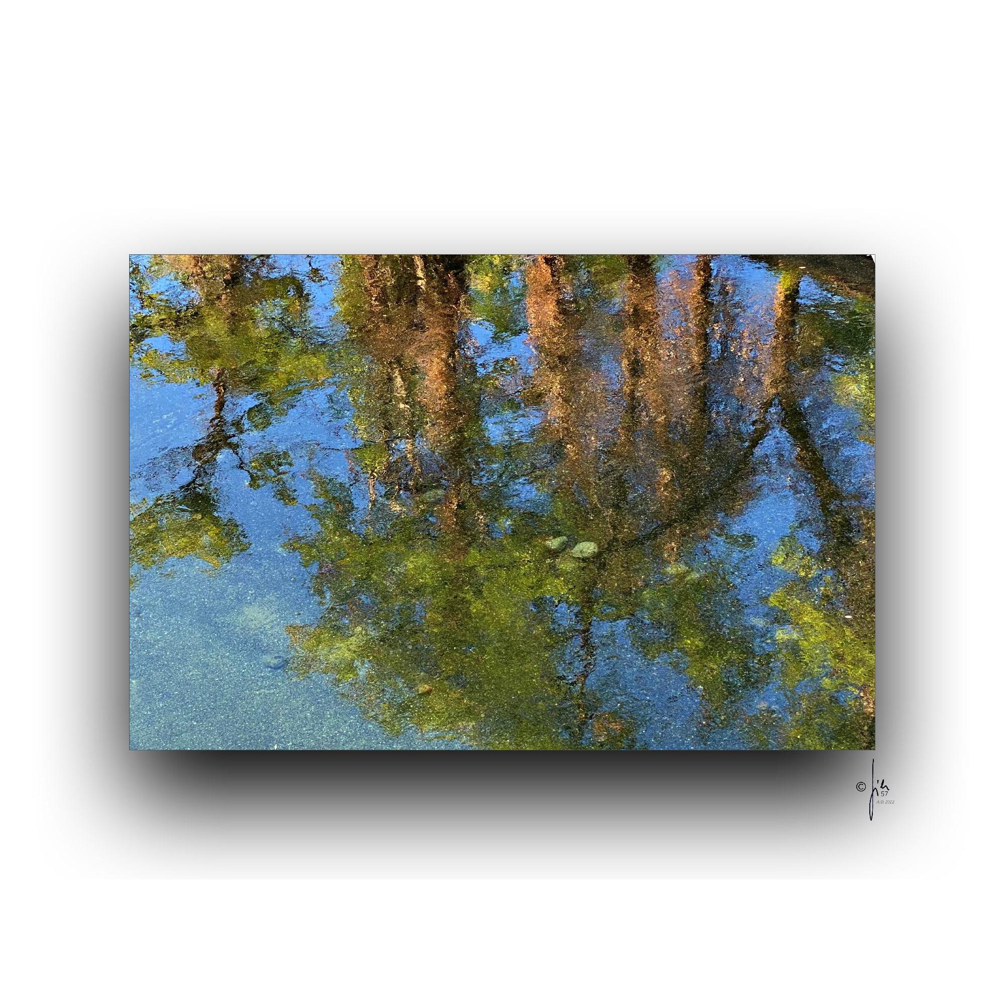 Il riflesso degli alberi nell’acqua bassa, come in un dipinto puntinista, trasforma questa scena in un’opera d’arte naturale. I colori si scompongono in mille piccoli frammenti e sfumature, creando un effetto ipnotico, come se la natura stessa avesse deciso di dipingere la scena