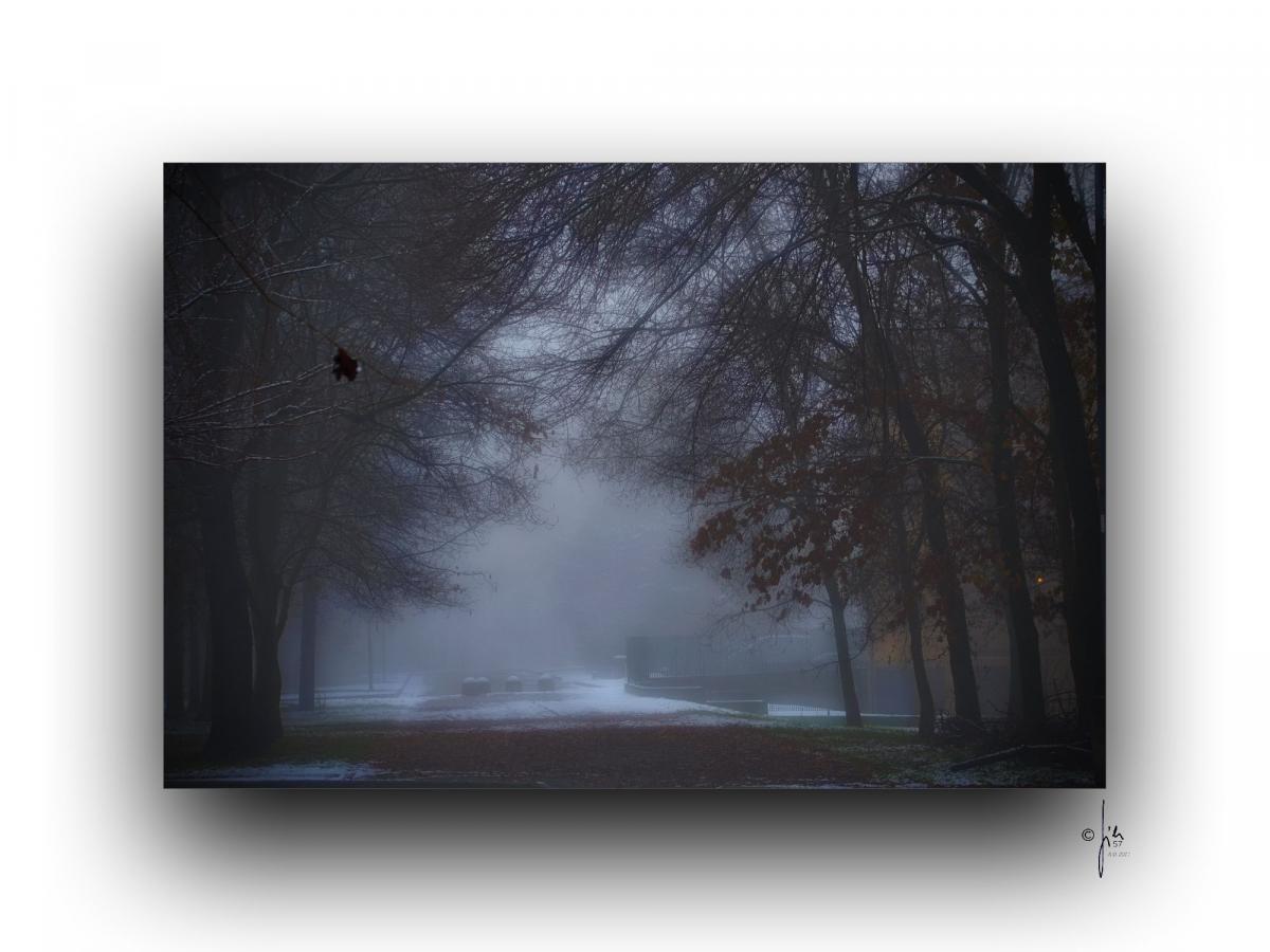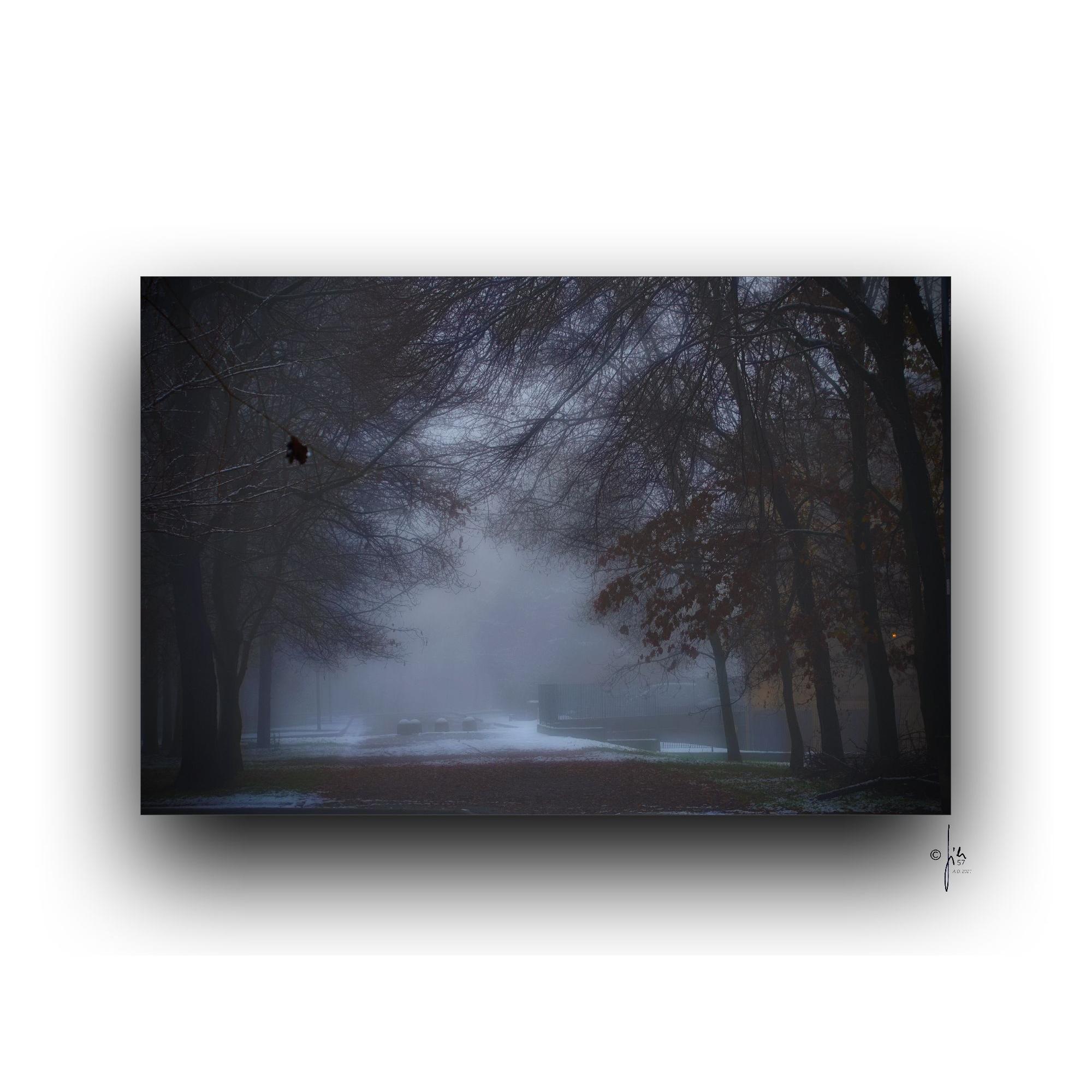 "Attraversare il bosco avvolto dalla nebbia è come perdersi in un sogno etereo, dove gli alberi si delineano appena tra le dense cortine di vapori e le luci diffuse creano un'atmosfera misteriosa e suggestiva."