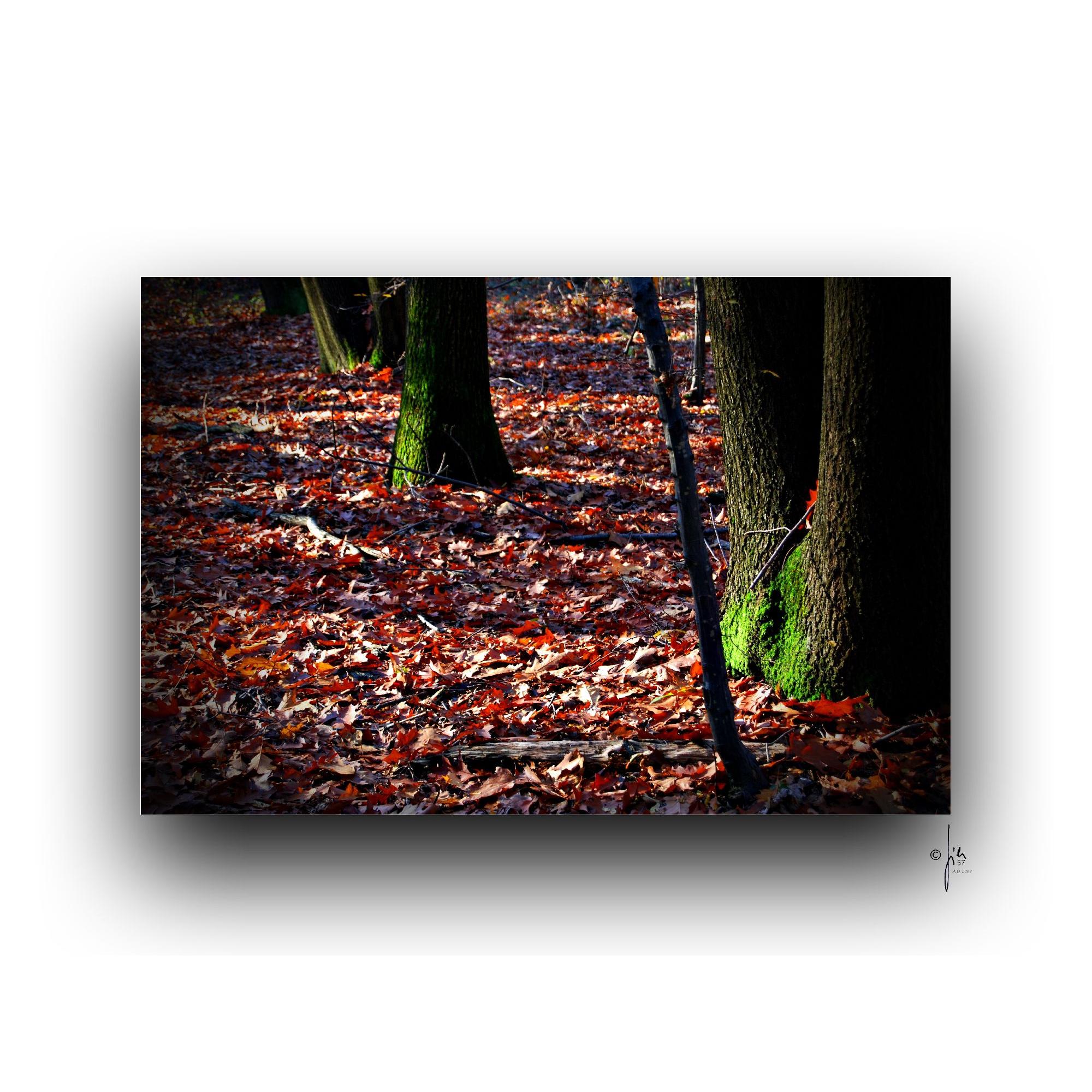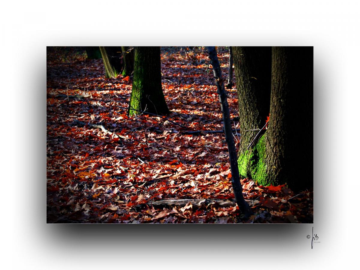In mezzo ai due tronchi, dove il muschio splendeva, si accovacciava strigendo le gambe al petto; il mare di foglie con la luce che emanava erano i suoi calzari.